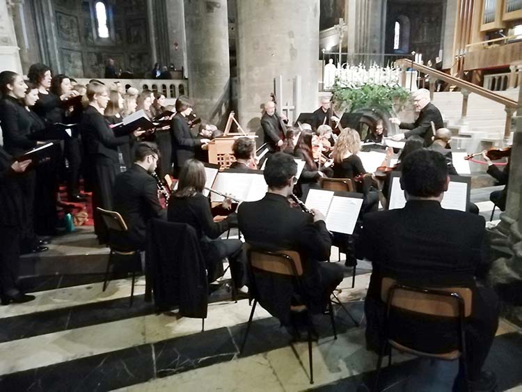 Le splendide note musicali del coro “Collegium vocale di Crema” hanno accompagnato la celebrazione che si è conclusa all’esterno con il lancio del tocco, il classico berretto quadrato, sulla scalinata del Duomo.